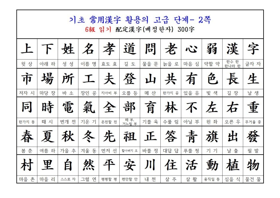<읽기 한자 300자>