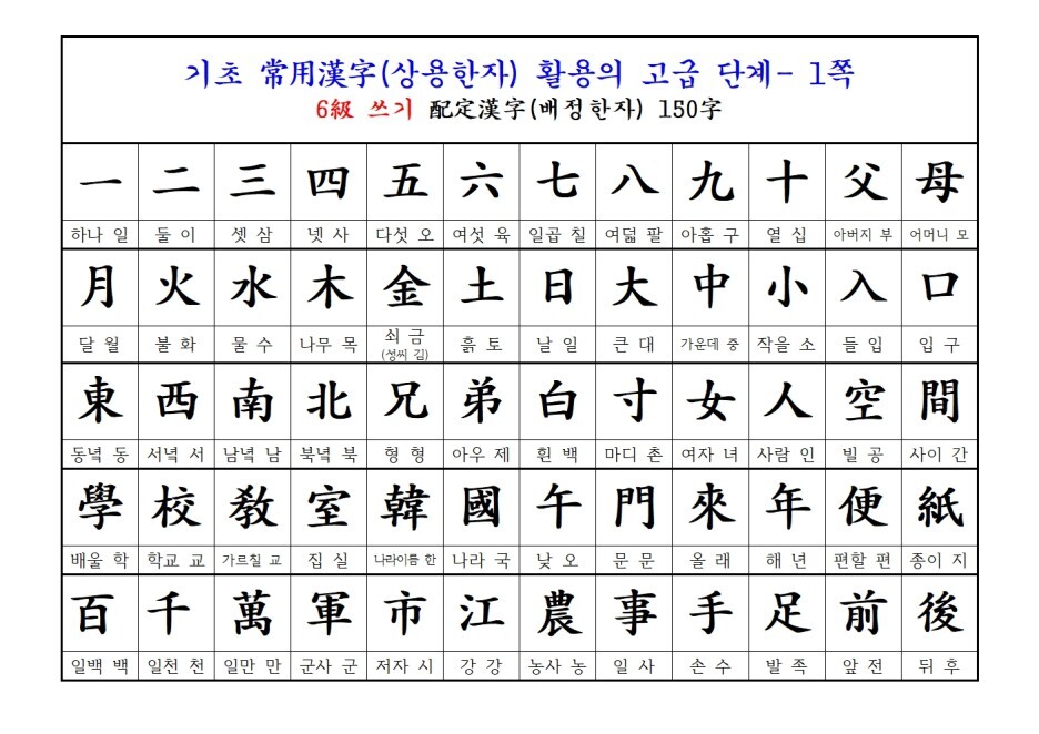 쓰기 한자는 150자