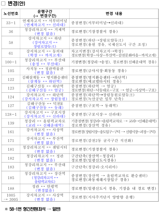 이번 개편은 부산시가 빅데이터 분석 결과와 시민들의 의견을 기반으로 설계한 결과로, 도시철도가 닿지 않는 기장·강서구 지역을 우선 적용 대상으로 정하고 시작됩니다.