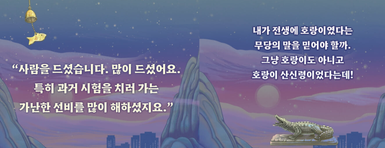 하지만 호랑이 시절 선한 이들도 많이 해쳐서 백명의 마음의 한을 풀어야 한단다. 그래야 귀문이 닫히고 귀토, 흙으로 돌아간다, 영원한 안식, 호랑이 신이 사라진다니 어떻게 사주카페를 안 열 수 있을까...