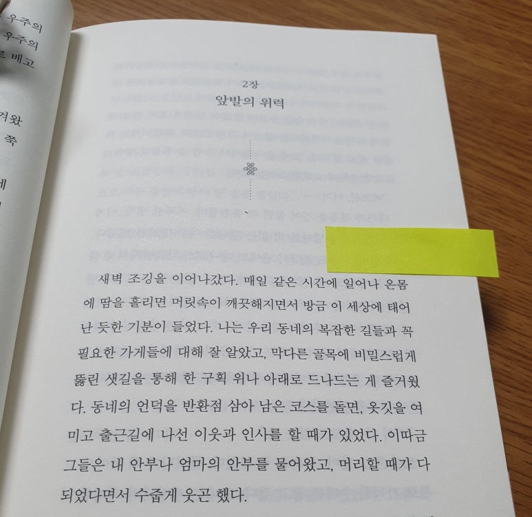 • 매일 같은 시간에 일어나 온몸에 땀을 흘리면 머릿속이 깨끗해지면서 방금 이 세상에 태어난 듯한 기분이 들었다.
